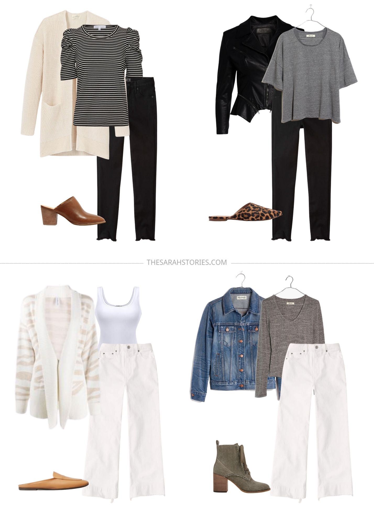 Below I’ve put together 24 outfits using only the items listed in the capsule. This is just a fraction of the looks one can create! Feel free to accessorize as desired!