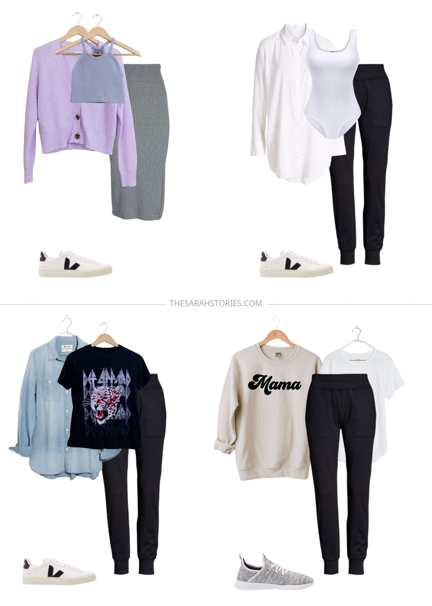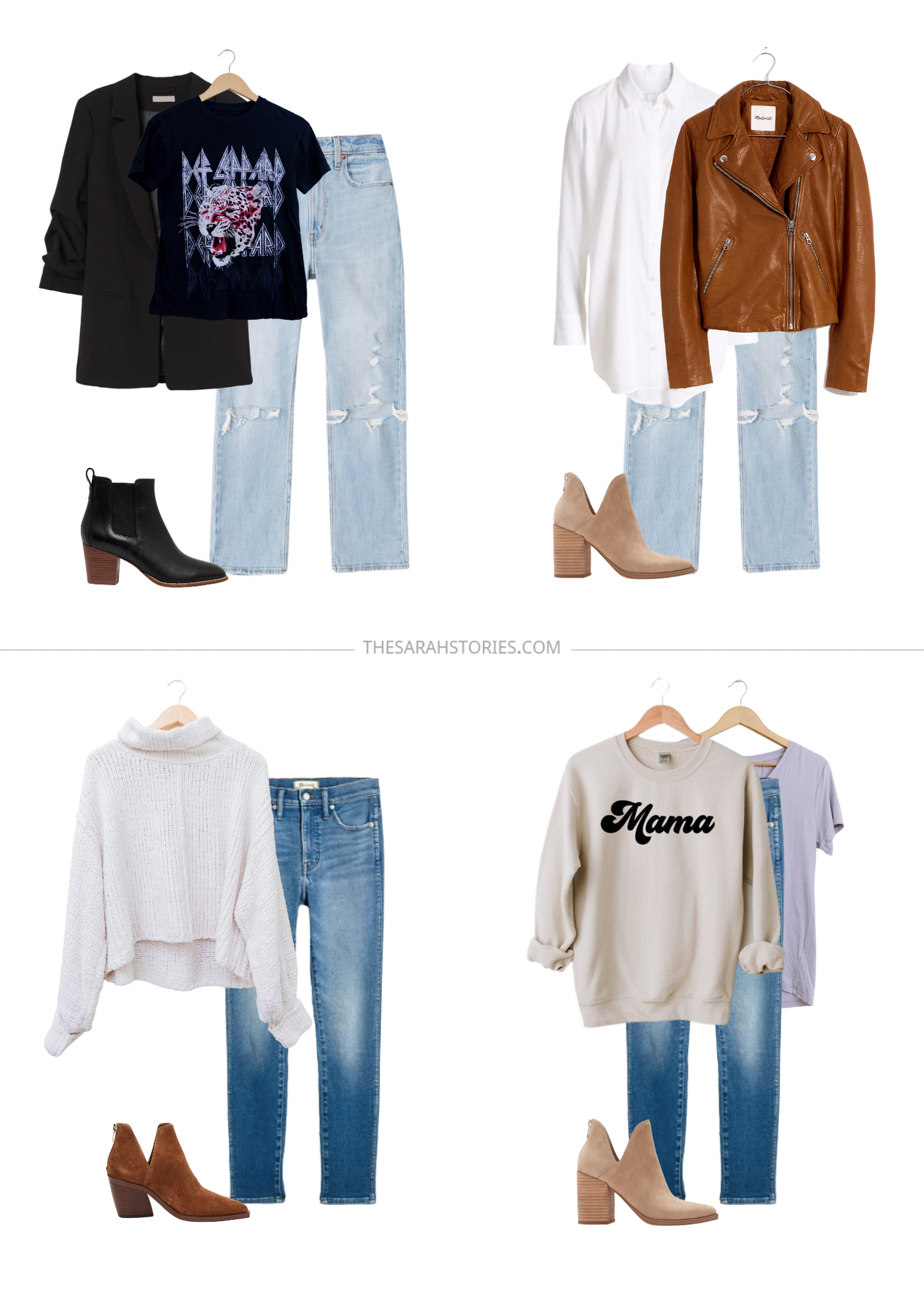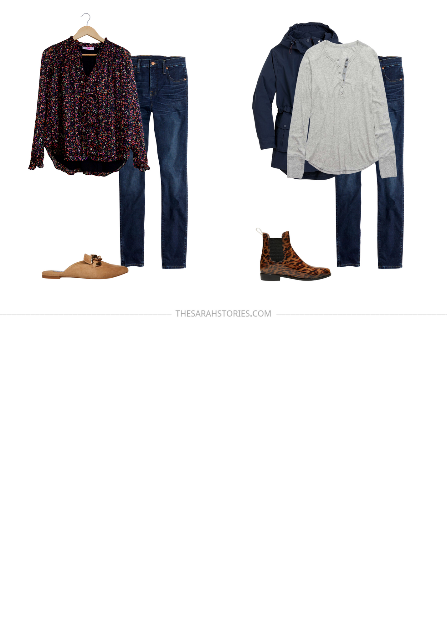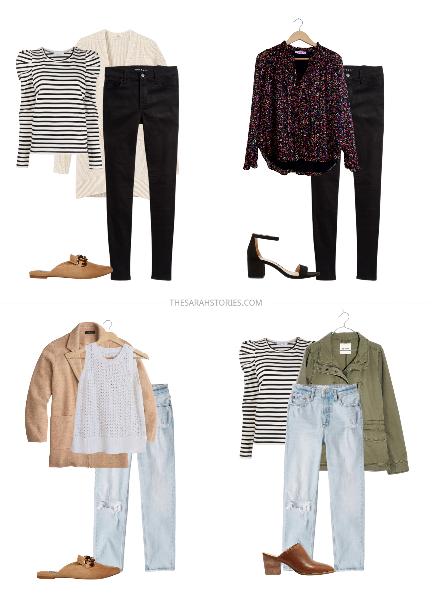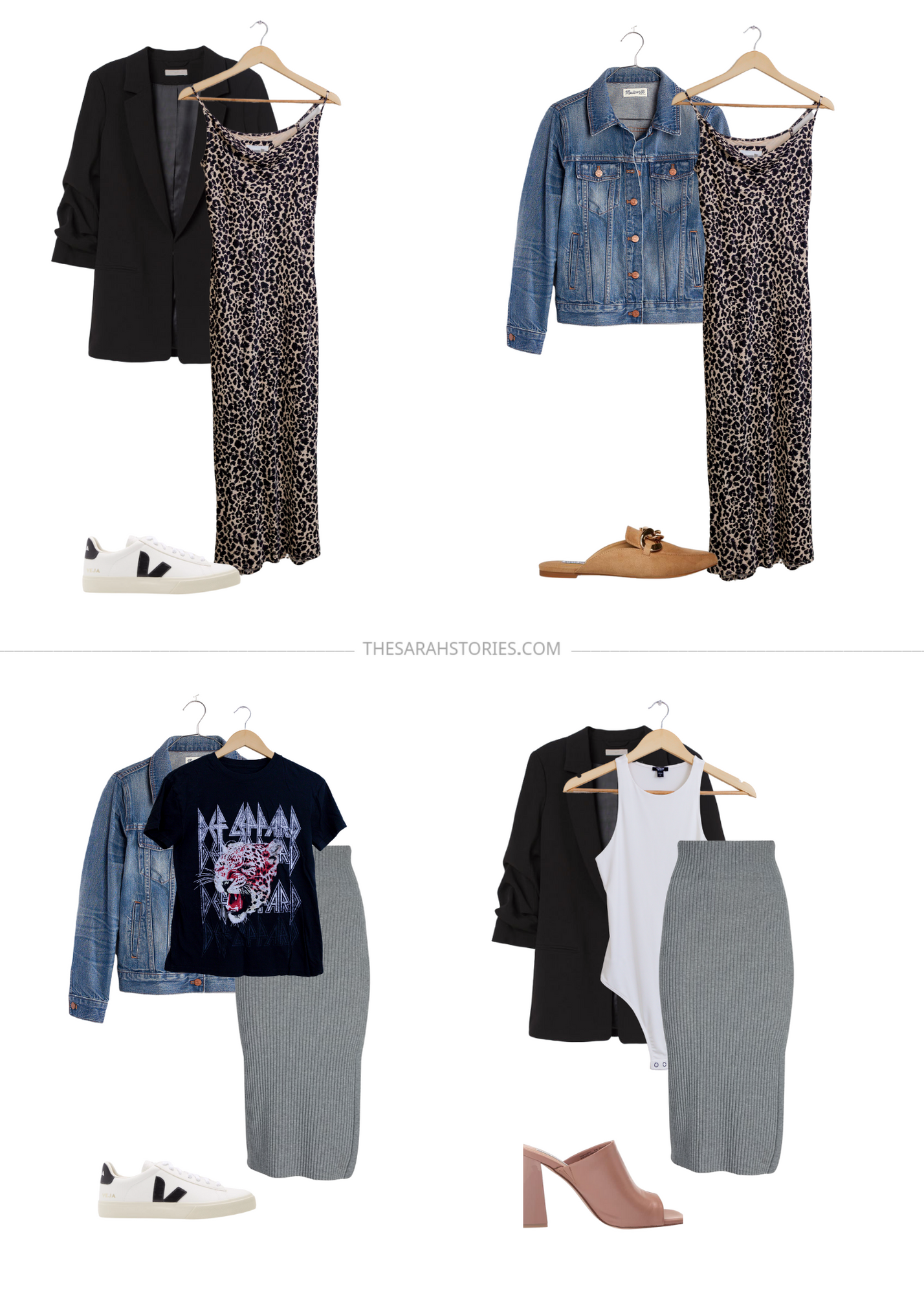 Below I’ve put together 28 outfits using only the items listed in the capsule. This is just a fraction of the looks one can create! Feel free to accessorize as desired!