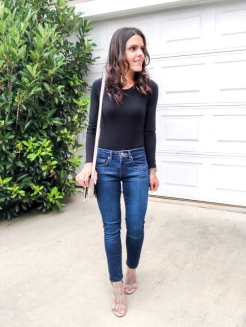 bodysuit (similar) | denim | handbag | heels
