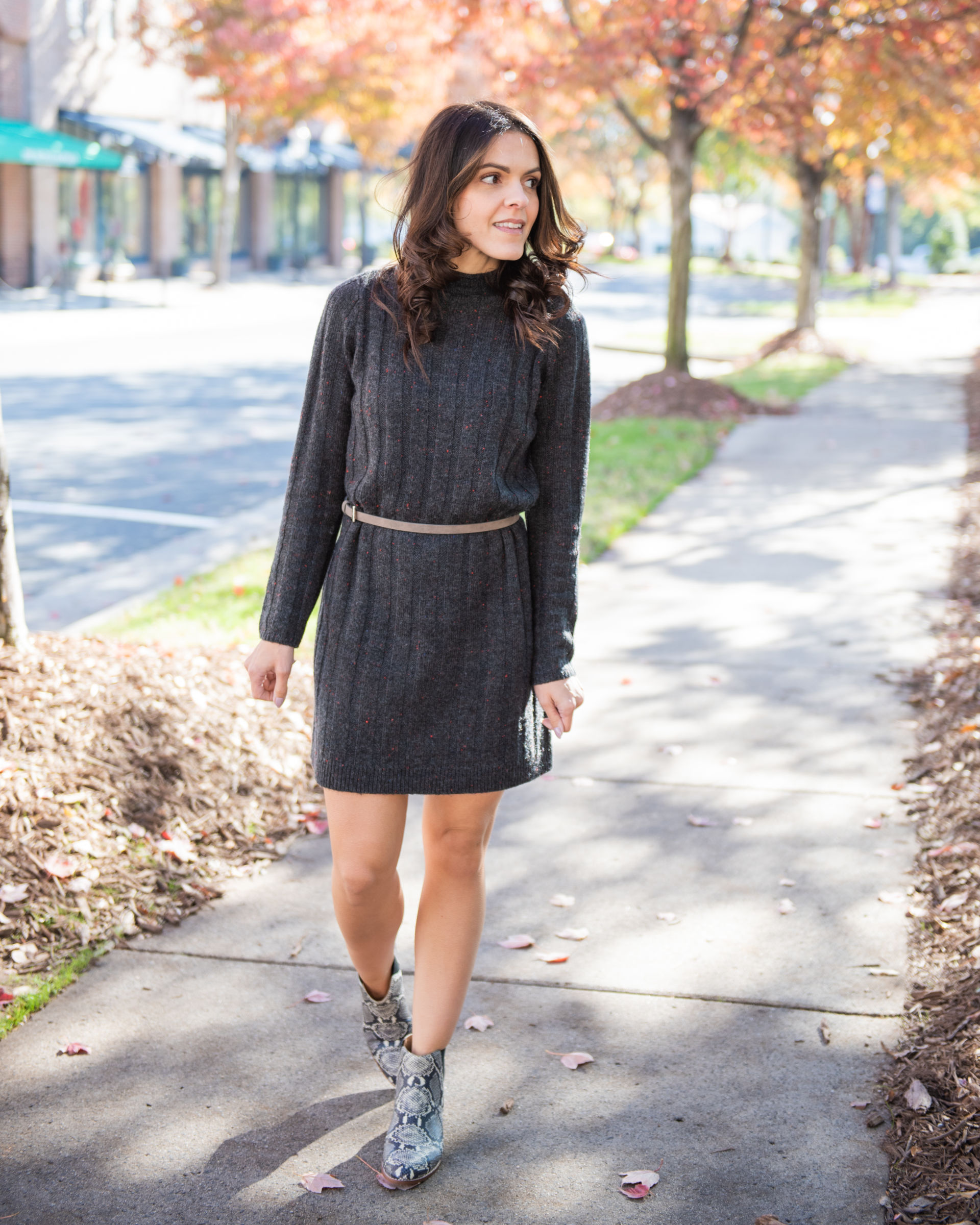 Sweater weather is here, ya’ll. The cool air hits and it’s go-time.  It’s as if a light switch is turned on, cueing rotation for sweaters on repeat thru Spring. I also feel it eases the ability to style – sweaters hold the easy trait.  Got denim? Top it with a sweater. How about that pleated midi skirt? A sweater will round up your look nicely. There’s no doubt it’s an easy go to this season. But if we’re pulling out the easy button – the ‘one and done’ cold weather piece deserves a spotlight of it’s own – cue the sweater dress.
