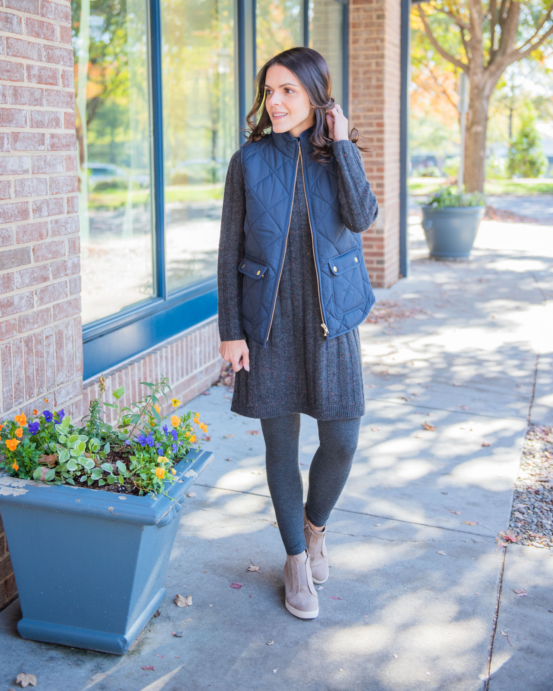 Just because it’s a dress, doesn’t mean it has to be dressy. Make it your everyday look and layer with a vest, leggings, and wedge sneakers!