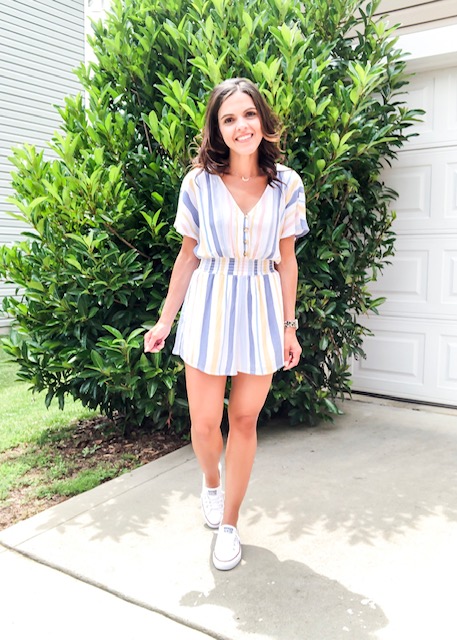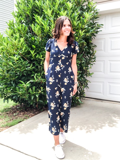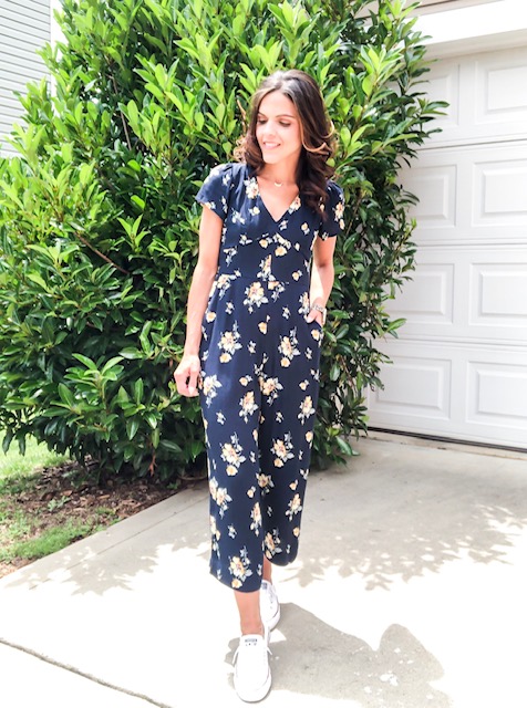 Tho the jumpsuit is no longer available and this romper is limited on sizes, I wanted to include the option to style your sneakers with a popular Summer favorite. Pairing a more sophisticated piece or print with a casual shoe not only proves the one-piece versatile, but it makes the combination of feminine and sporty work! I’ve found a few similar styles and prints here and here.
