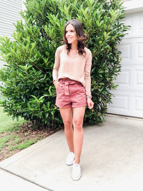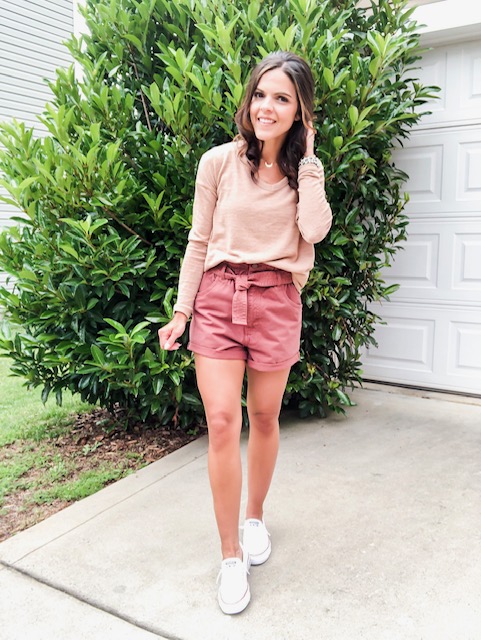 My go-to short for the Summer is always high waisted. I love the fit of this pair – the waist is elasticized and fit’s comfortably. And on those cool(er) days and nights I’ll pair them with a lightweight sweater, similar to this one. Casual comfort for the win!