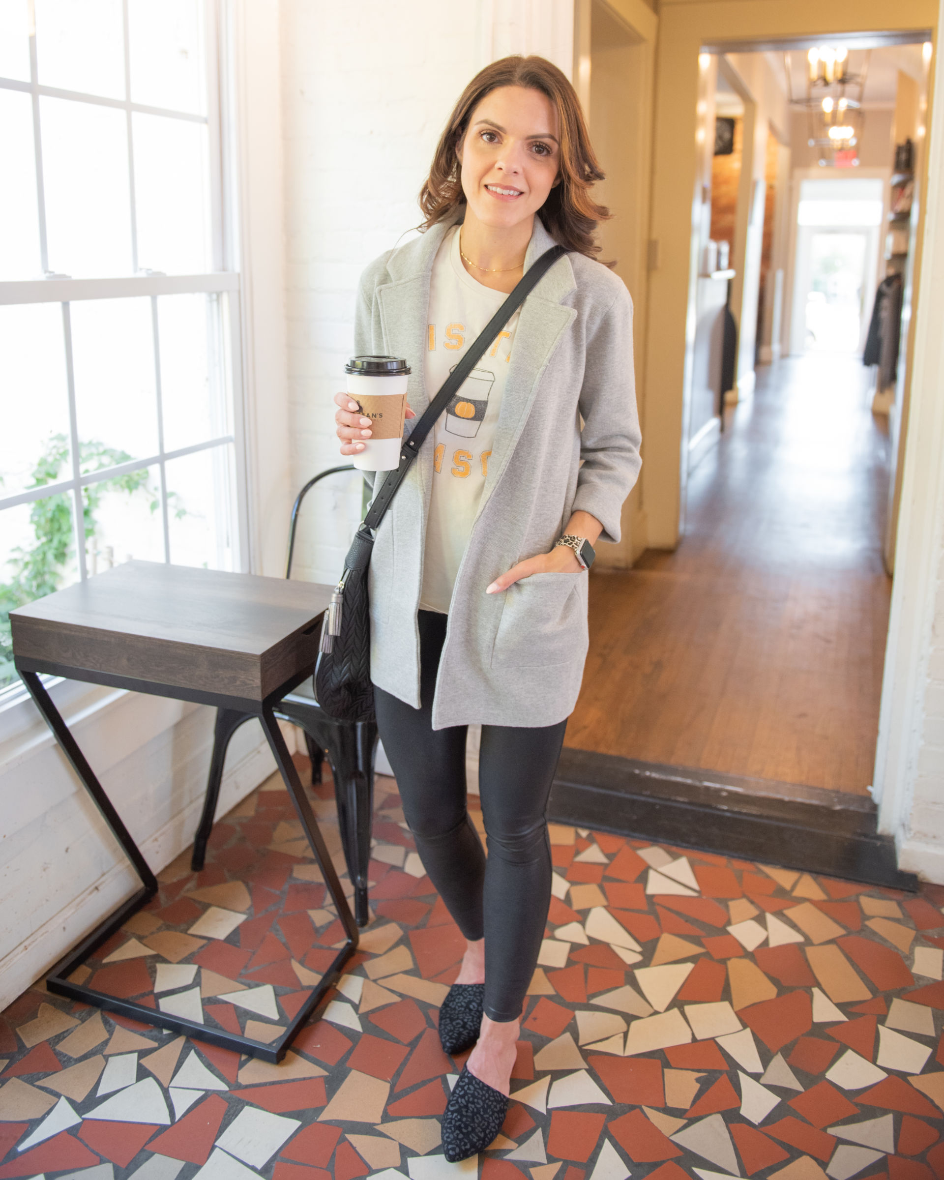 You can bet I included my most favorite Spanx Faux leather leggings in this list, tho any solid color legging would render fashionable! Create a casual look with your sweater blazer (mentioned above) or edge up your look for happy hour with studded booties and a leather jacket. All pieces run TTS.